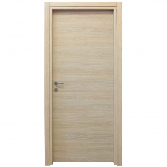 Anta tamburata di spessore nominale 44 mm, riempimento in cartoncino trattato, placcato con pannelli in MDF spessore 3/4 mm nobilitato con carta finish. Telaio piatto in MDF di spessore 40 mm con guarnizione di battuta di gomma. Coprifilo telescopici esterno ed interno in Mdf da 60 mm con aletta utile da 8 mm. Ferramenta serratura mediana. Anuba reversibili. Dimensioni 210x90 cm. Colore Rovere sbiancato
