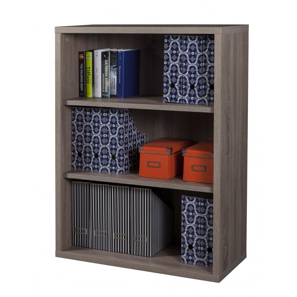 Art. LB4800 K511. Il mobile modulare composto da tre vani aperti con due mensole spessore 22 mm regolabili in altezza, e nella parte posteriore presente una schiena in tinta. Lalto spessore della struttura di ben 30 mm rende questo articolo importante ed elegante. Struttura in truciolare rivestito in melaminico. Dimensioni 82 x 36 x h 112 cm. Colore rovere tartufo. Da montare.