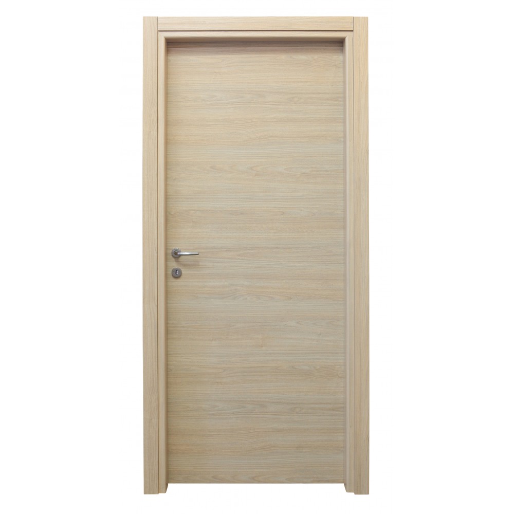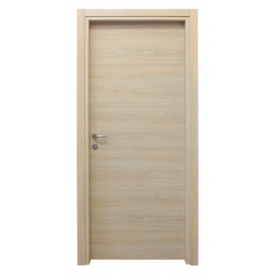 Anta tamburata di spessore nominale 44 mm, riempimento in cartoncino trattato, placcato con pannelli in MDF spessore 3/4 mm nobilitato con carta finish. Telaio piatto in MDF di spessore 40 mm con guarnizione di battuta di gomma. Coprifilo telescopici esterno ed interno in Mdf da 60 mm con aletta utile da 8 mm. Ferramenta serratura mediana. Anuba reversibili. Dimensioni 210x70 cm. Colore Rovere sbiancato
