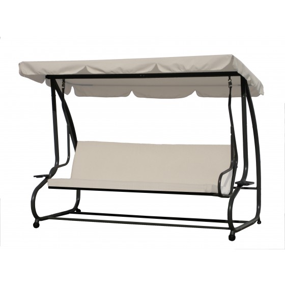 struttura in acciaio verniciato a polveri epossidiche.A sgancio rapido per trasformazione a letto.Tubi portanti d 48 mm, tubi di collegamento d 28-32 mmTop in poliestere 180 g/m2 spalmato in PVC.Seduta in poliestere, spessore 8 cmDimensioni 230x120xh170 cm