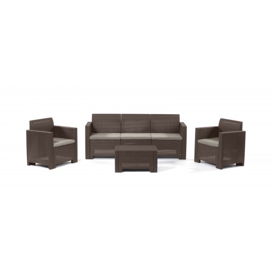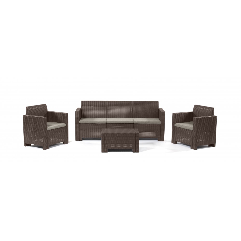 SALOTTO RESINA NEBRASKA 3 4 PZ C/CUSCINI MARRONE