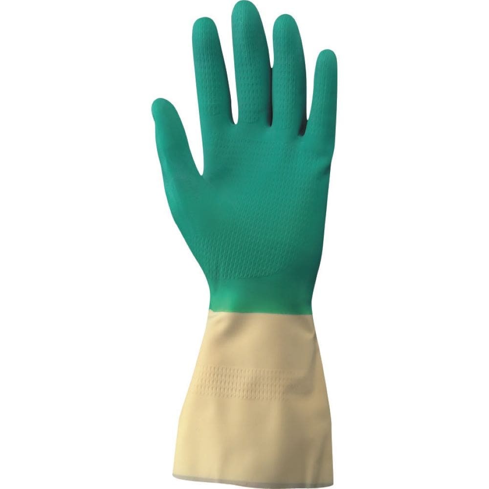I GUANTI BICOLOR NERI sono realizzati in lattice naturale, con cotone fioccato all' interno e zigrinatura esterna in rilievo antiscivolo su palmo e dita. Confortevoli, elastici, ipoallergenici e traspiranti, si possono indossare anche per periodi prolungati. Ottima presa in ambienti asciutti e umidi, sconsigliato in caso di contatto con oli, grassi, derivati del petrolio, solventi colorati, ecc. Spessore 0,40mm. Colore giallo/verde.