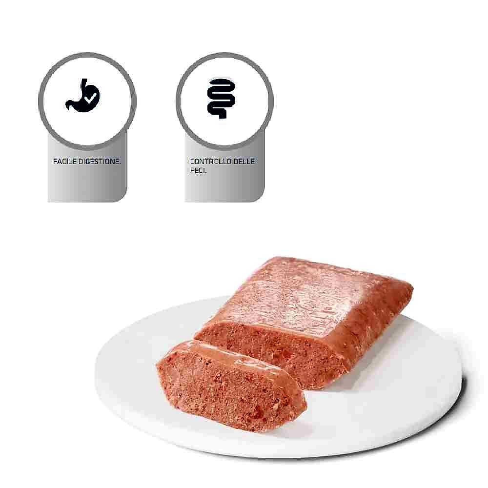 - Ingredienti: Carni e derivati (pollo 43%), Cereali (riso 8 %), sostanze minerali, oli e grassi, sottoprodotti di origine vegetale (frutto-oligosaccaridi 0,1%), mannano-oligosaccaridi 0,1%. Fonte di ingredienti altamente digeribili: Pollo e riso;