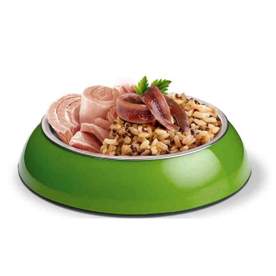 - composizione: tonno 53%, acciughe 4%, riso integrale 4%, sostanze minerali, olio di pesce, farina di riso 1%, amido di tapioca, fruttoligosaccaridi FOS 0,16%.