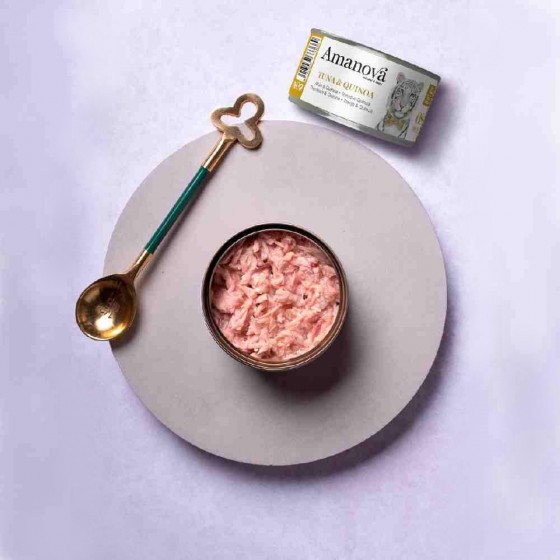 - composizione: tonno 60%, quinoa 5 %, acqua 35%;