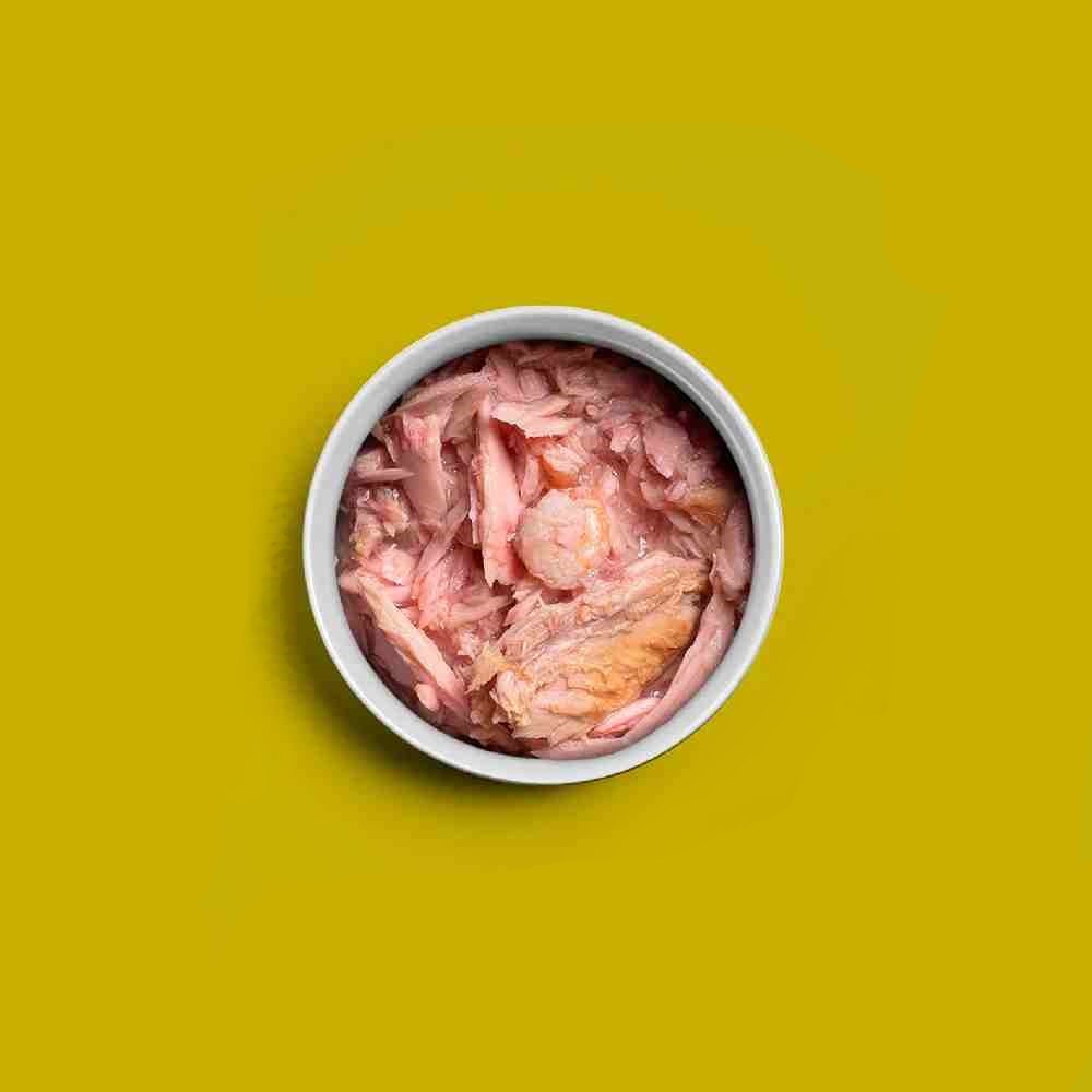 - composizione: tonno 60%, gamberetti 5%, acqua 35%;
