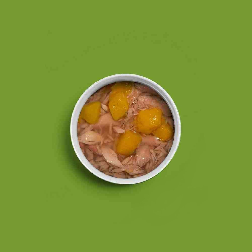 - composizione: tonno 60%, mango 5%, riso 1%, acqua 34%, ;